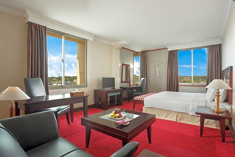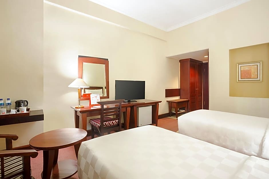 Swiss-Cafe Restaurant on site offers a diverse menu spanning American, Cantonese, Chinese, Indonesian, Local, and Grill BBQ cuisines, with ambiances ranging from FamilyFriendly to Romantic.